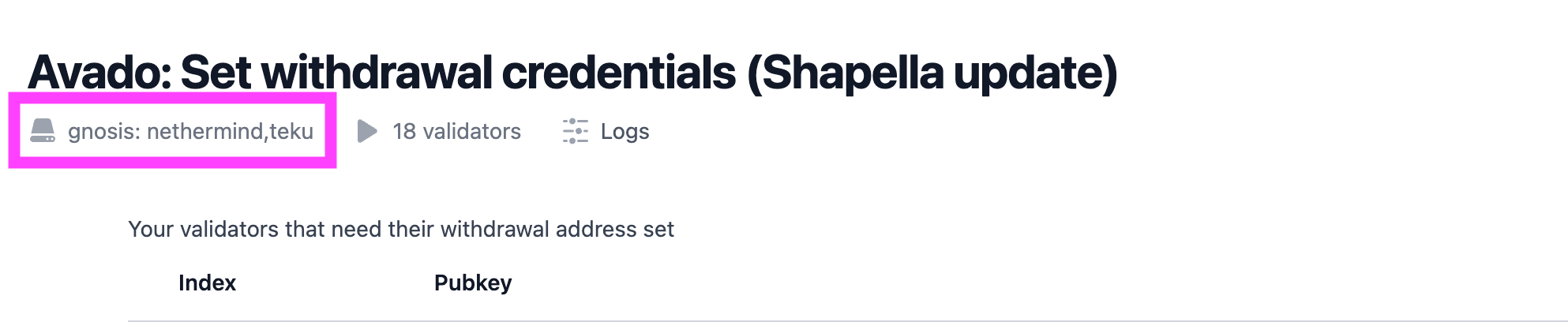 Similar to Ethereum, the Gnosis chain has also successfully undergone a Shapella update. This update enables withdrawals for staked GNO. Reward payments are automatically and regularly sent to a designated withdrawal address. For these automatic withdrawals to function, your validators require a withdrawal credential that starts with 0x01. You can easily verify this on the Teku-Gnosis page on your Avado. If the address is not yet set, the withdrawals column will display yellow todo tags.