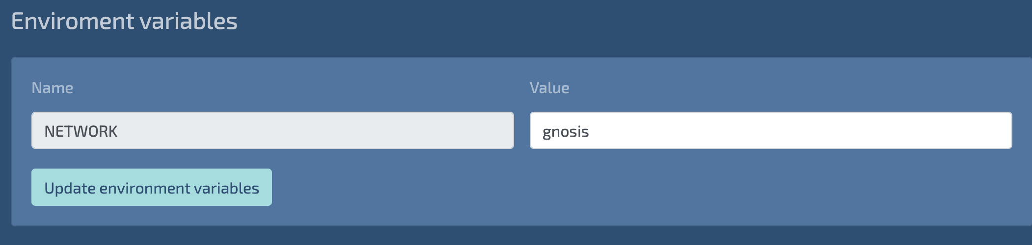 NETWORKvalue frommainnettognosisand click Update environment variables.