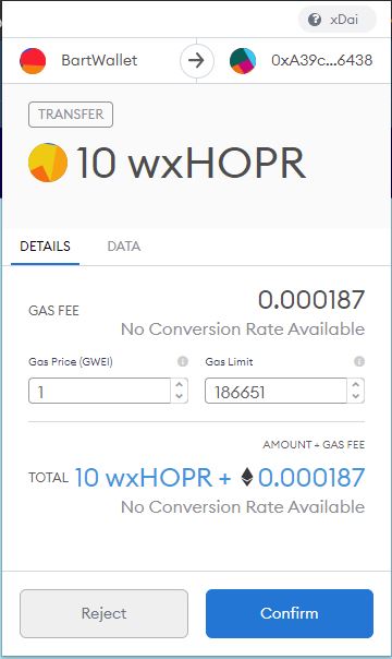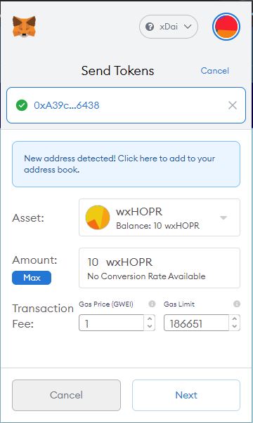 FYI: if you convert xDAI to HOPR, the HOPR you see is actually xHOPR.