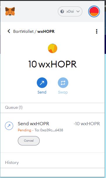 You’ll see the transaction is pending. Wait a little, message will go to status “Send wxHOPR".