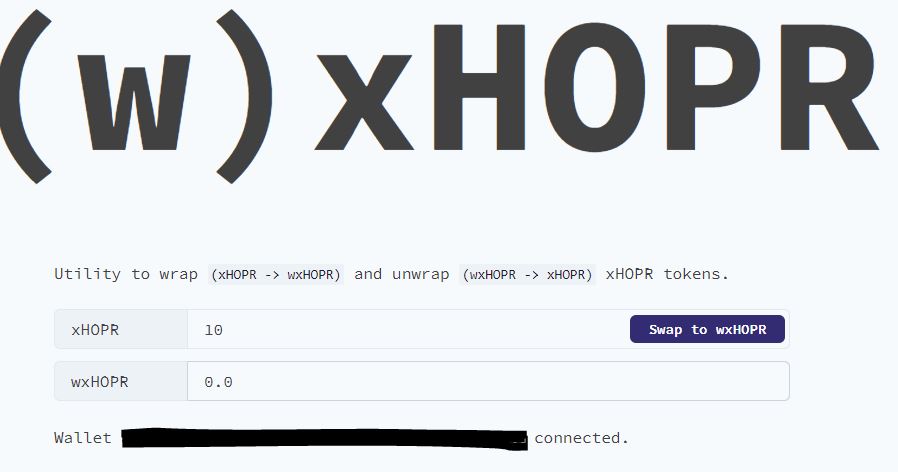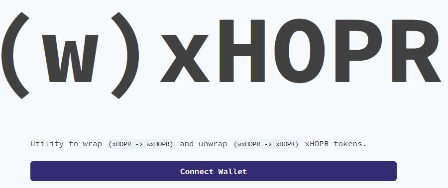Go to https://wrapper.hoprnet.org/ > “Utility to wrap (xHOPR -> wxHOPR) (and unwrap (wxHOPR -> xHOPR) xHOPR tokens.)”