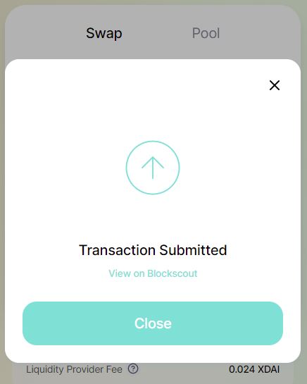 - Use https://app.honeyswap.org/#/swap to change xDAI to HOPR (i.e. xHOPR) : via xDAI chain