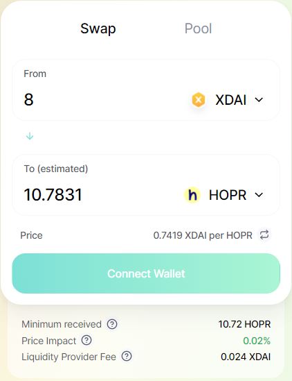 Start with xDAI > HOPR (xHOPR) > wxHOPR