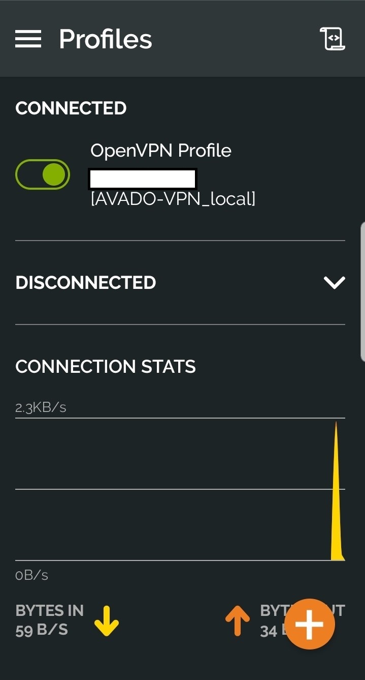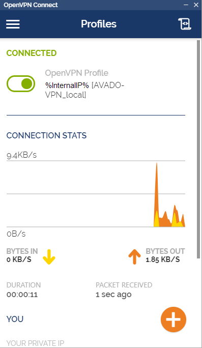 If you have followed the steps correctly and you are connected to your home network (not Avado WiFi), you should see the following screen indicating you are connected to your VPN.