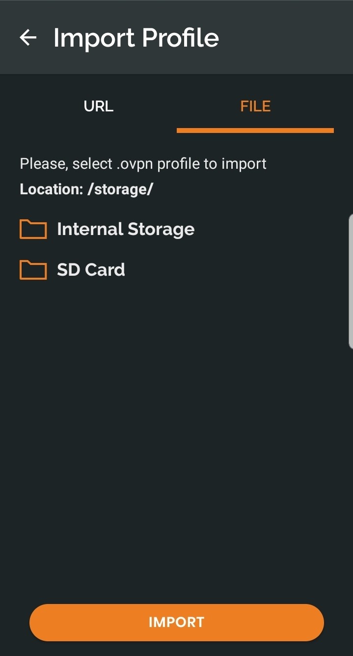 Then, select File to import the VPN configuration files that you downloaded. Browse to the location where the VPN configuration files were downloaded using the file explorer and then click on IMPORT. Do this for both the local and remote configuration files.