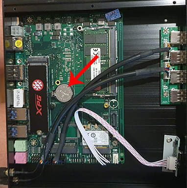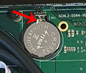 Locate the CMOS Battery. It is the small silver 3V Lithium Battery that looks like this.